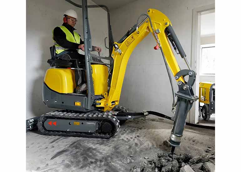 在进行室内装修时,客户可能需要改造房屋、破碎墙壁,此时小微型挖掘机尺寸较小,可以通过电梯运送上来,用它进行破碎,其工作效率比人工锤更高。